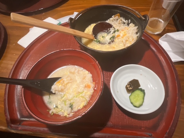 父のおすすめで両親と一緒に行った。初めてぞうすい屋に行った。私はしゃけのぞうすいを食べた。お酒は飲まなかったが雑炊がさっぱりしていてお酒を飲んだ後には良いなと思った。次は友人と行きたい。
